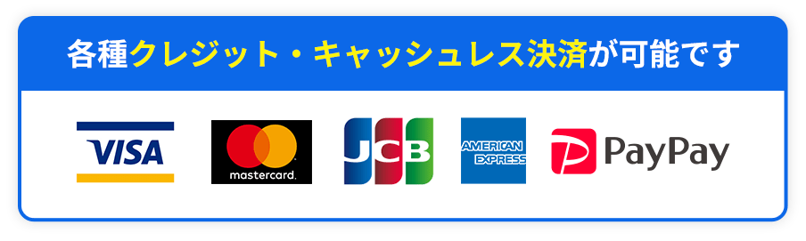 お客様のご希望に合わせて、クレジットカード、キャッシュレス決済をお選びいただけます。