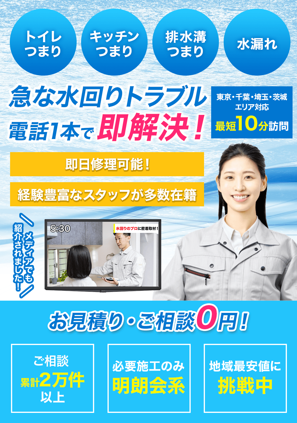 これまでに20,000件以上の施工実績を積んできた経験豊富なプロが水トラブルを解決。 -